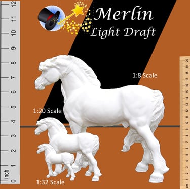 We are a small US based business in Lewiston, ID. We reproduce exclusive model horse resins in a variety of sizes;1:32 scale (2"H x 3"L) 1:20 scale (5″H x 6″L), 1:9 scale (8″H x 10″L) and 1:6 scale (12″H x 14″L).